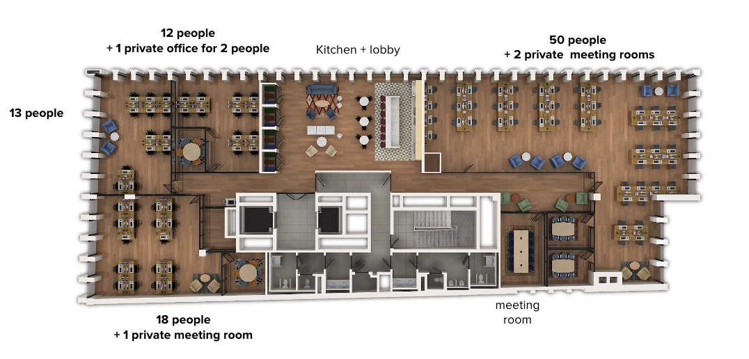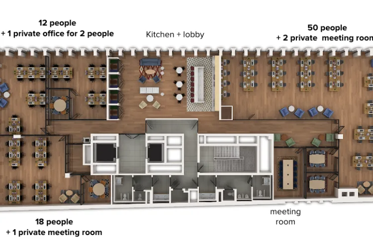 Flexible serviced offices and inspiring common spaces. Occupying almost 5,500 m² on six floors, Mindspace Koszyki offers comfortable serviced offices and spacious and stylishly designed common spaces. Enjoy fully equipped kitchens, modern meeting rooms and inspiring design that inspires creativity.